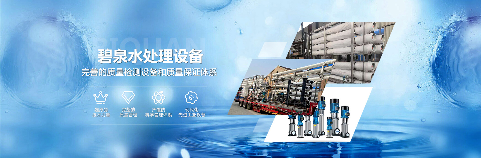 公司主要生產水處理設備、過濾器系列、交換器系列、反滲透裝置、不銹鋼設備、全自動給水設備及非標設備的制造等